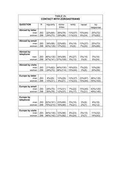 The majority of the respondents maintained some form of contact with other Zoroastrians both in the UK and abroad. It is interesting to see that contact by letter is less frequent than contact by telephone. In the 2003 survey e-mail is a new means of keeping contact with other Zoroastrians.