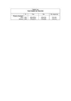 This question generated a lot of interesting material in terms of how many respondents affirmed that prayer was powerful, 69%, 203 men and 79%, 237, women.